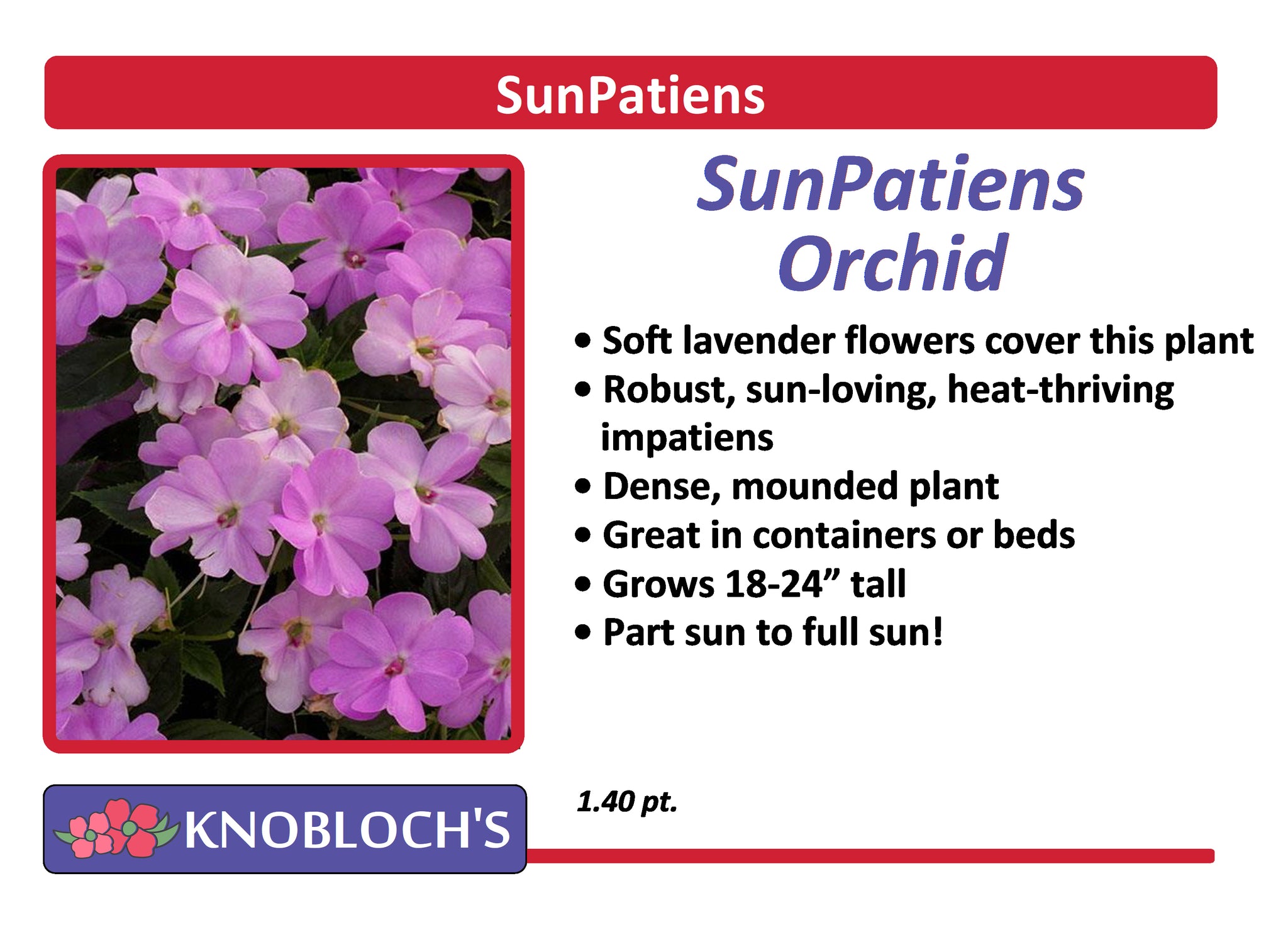 • Soft lavender flowers cover this plant • Robust, sun-loving, heat-thriving impatiens • Dense, mounded plant • Great in containers or beds • Grows 18-24” tall • Part sun to full sun!