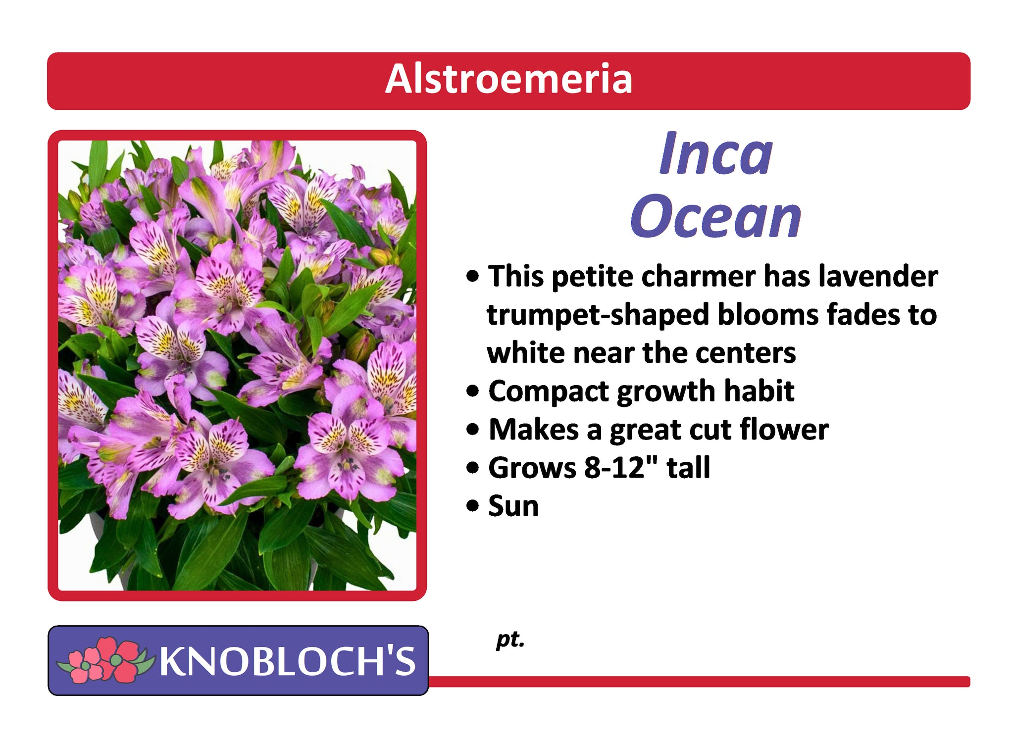 • This petite charmer has lavender trumpet-shaped blooms fades to white near the centers • Compact growth habit • Makes a great cut flower • Grows 8-12" tall • Sun